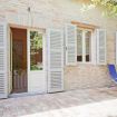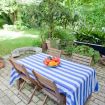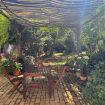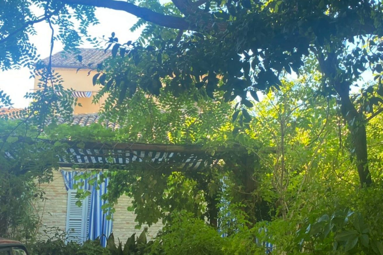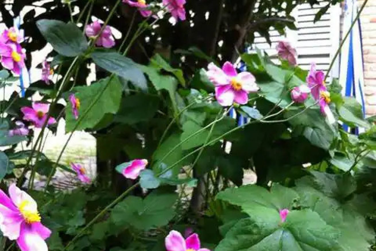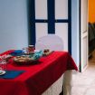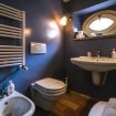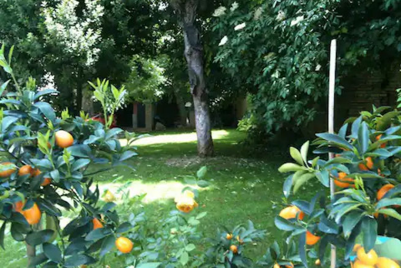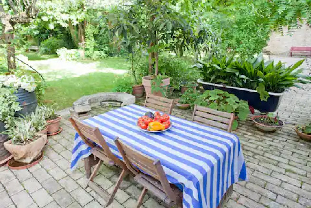 Una cucina che incanta: color indaco, con grande arco settecentesco e comoda zona pranzo. Fuori una splendida pergola a vostro uso esclusivo, nel grande giardino in comune con altri ospiti, ma con vostra zona di pertinenza.