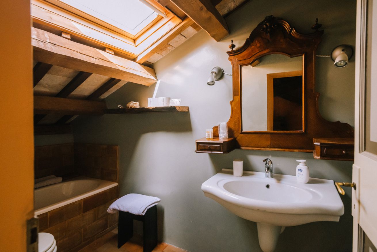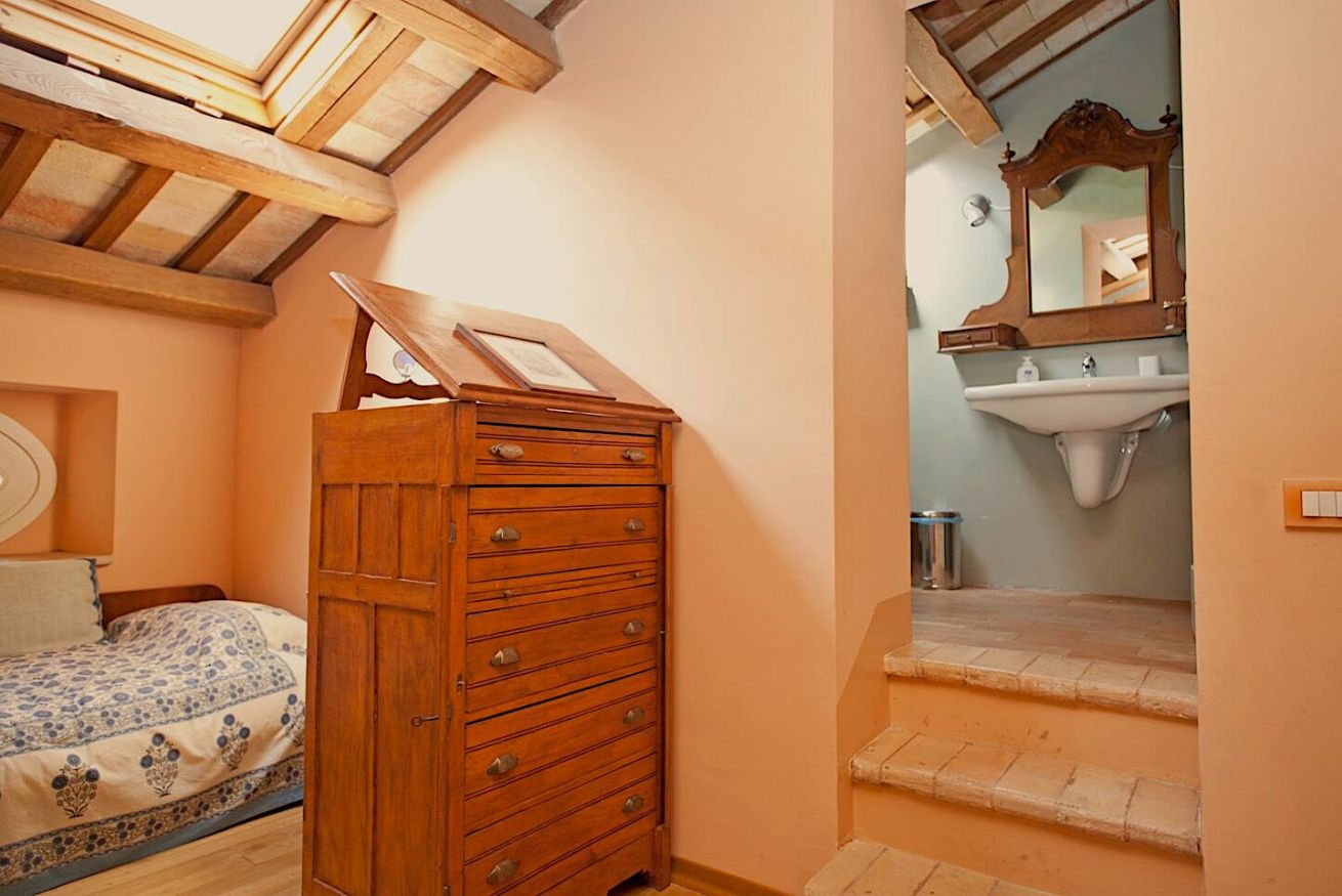 Ingresso indipendente, casa deliziosa con camera matrimoniale (grande letto a 2 piazze divisibile in 2 letti singoli) e un sottotetto ampio e aperto con grande letto singolo. Infine un’altra grande stanza con un letto da 1 piazza e mezzo. Due bagni privati: uno piccolino, l’altro con doccia.