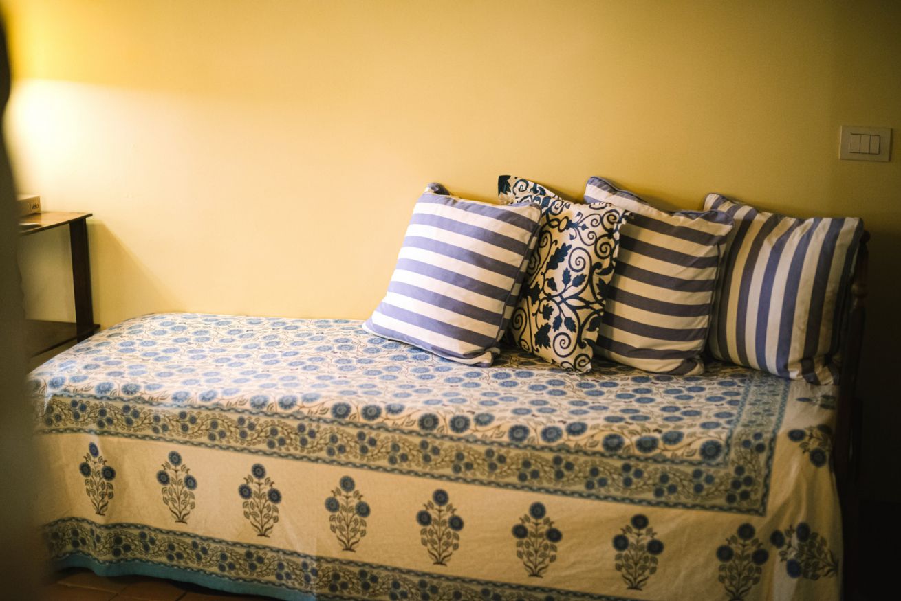 È una suite matrimoniale ad uso esclusivo degli ospiti, entrata indipendente. Si affaccia su un’ampia corte storica ad uso comune Corte dei Limoni: quasi una piazzetta, attrezzata di sedie, tavoli e verde. La suite ha un letto matrimoniale e un letto singolo piccolino (bambini fino anni 11). Angolo studio con scrivania e un grande bagno privato con vasca. Dotata di wifi e riscaldamento: NO cucina. Particolarmente consigliata per coppie o piccole famiglie in cerca di mare e tradizioni locali.